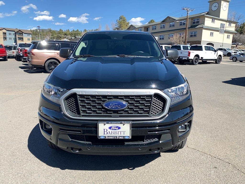 Babbitt Ford Serving the Flagstaff Community for Over 100 Years is pleased to present for sale this 2019 Ford Ranger XLT as part of our hand-selected pre-owned lineup. This vehicle is finished in the Shadow Black exterior paint and Medium Stone interior. Other factory options include: Trailer Tow Package, 4-Wheel Disc Brakes, 6 Speakers, ABS brakes, Air Conditioning, Brake assist, Compass, Delay-off headlights, Driver door bin, Dual front impact airbags, Dual front side impact airbags, Electronic Stability Control, Exterior Parking Camera Rear, Front anti-roll bar, Front Bucket Seats, Front Center Armrest, Front wheel independent suspension, Fully automatic headlights, Illuminated entry, Low tire pressure warning, Occupant sensing airbag, Overhead airbag, Passenger door bin, Power steering, Power windows, Radio: AM/FM Stereo w/6 Speakers, Rear seat center armrest, Rear step bumper, Speed-sensing steering, Steering wheel mounted audio controls, TBD Axle Ratio, Telescoping steering wheel, Tilt steering wheel, Traction control, Trip computer, Variably intermittent wipers, and Voltmeter. RWD 10-Speed Automatic EcoBoost 2.3L I4 GTDi DOHC Turbocharged VCT