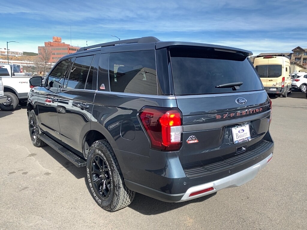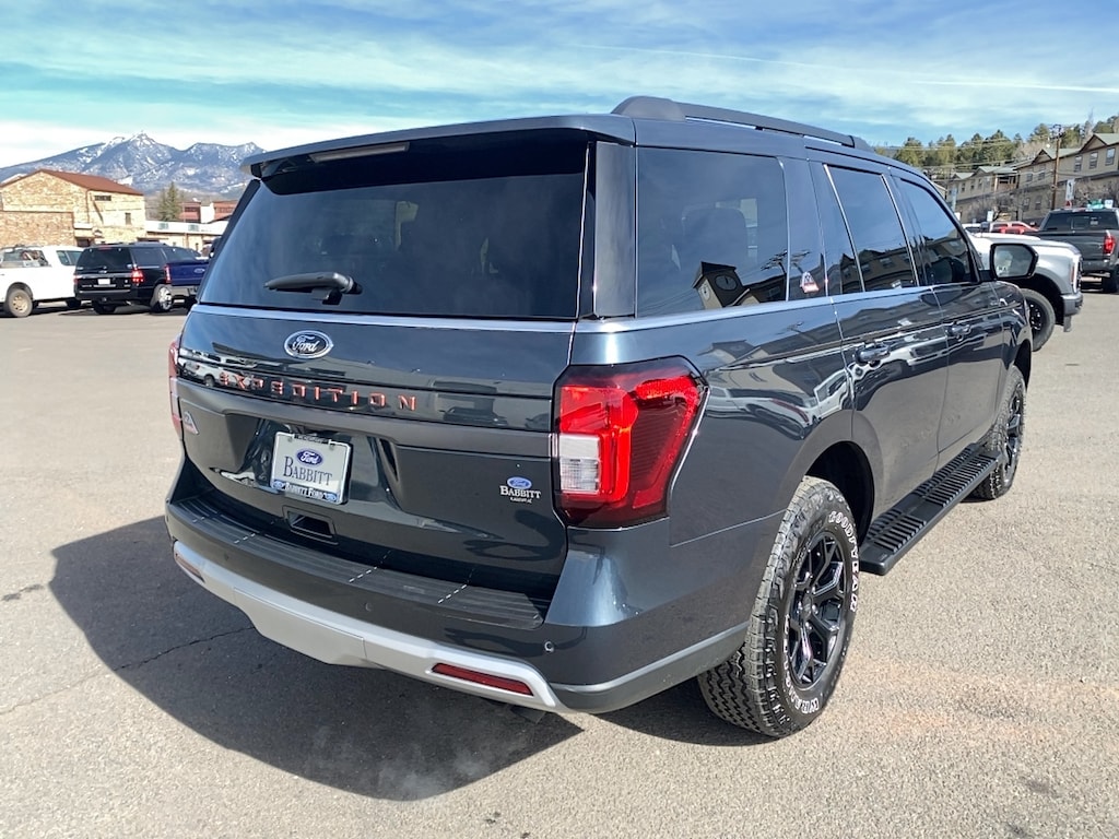 Babbitt Ford Serving the Flagstaff Community for Over 100 Years is pleased to present for sale this 2024 Ford Expedition Timberline as part of our hand-selected pre-owned lineup. This vehicle is finished in the Stone Blue Metallic exterior paint and Deep Cypress interior. Other factory options include: Equipment Group 500A Standard Package, Heavy-Duty Trailer Tow Package (Integrated Trailer Brake Controller and Pro Trailer Backup Assist), 4WD, 3rd row seats: split-bench, 4-Wheel Disc Brakes, 6 Speakers, ABS brakes, Adjustable pedals, Air Conditioning, Alloy wheels, AM/FM radio: SiriusXM with 360L, Auto High-beam Headlights, Auto-dimming door mirrors, Auto-dimming Rear-View mirror, Automatic temperature control, Brake assist, Bumpers: body-color, Compass, ControlTrac w/3.73 Axle Ratio, Delay-off headlights, Driver door bin, Driver vanity mirror, Dual front impact airbags, Dual front side impact airbags, Electronic Stability Control, Emergency communication system: SYNC 4 911 Assist, Exterior Parking Camera Rear, Four wheel independent suspension, Front anti-roll bar, Front Bucket Seats, Front Center Armrest, Front dual zone A/C, Front fog lights, Front reading lights, Fully automatic headlights, Garage door transmitter, Heated & Vent Cloth/Vinyl Front Captain's Chairs, Heated door mirrors, Heated front seats, Heated steering wheel, Illuminated entry, Leather steering wheel, Low tire pressure warning, Memory seat, Navigation system: Connected Navigation, Occupant sensing airbag, Outside temperature display, Overhead airbag, Overhead console, Panic alarm, Passenger door bin, Passenger vanity mirror, Pedal memory, Power door mirrors, Power driver seat, Power Liftgate, Power passenger seat, Power steering, Power windows, Radio data system, Radio: AM/FM Stereo w/MP3 Capable, Rear air conditioning, Rear anti-roll bar, Rear reading lights, Rear window defroster, Rear window wiper, Reclining 3rd row seat, Remote keyless entry, Security system, SiriusXM w/360L, Speed control, Speed-sensing steering, Speed-Sensitive Wipers, Split folding rear seat, Spoiler, Steering wheel memory, Steering wheel mounted audio controls, SYNC 4 w/Enhanced Voice Recognition, Tachometer, Telescoping steering wheel, Tilt steering wheel, Traction control, Trip computer, Turn signal indicator mirrors, Variably intermittent wipers, Ventilated front seats, Voltmeter, and Wheels: 18" Ebony-Painted. 4WD 10-Speed Automatic 3.5L V6