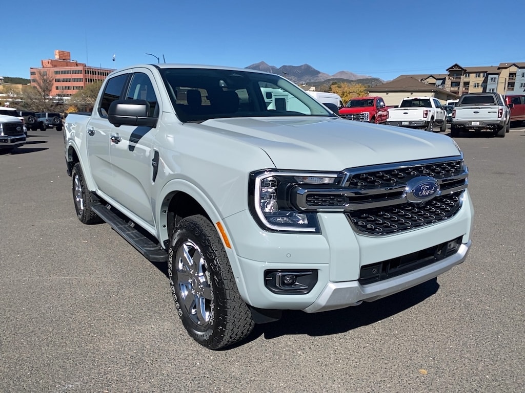 Babbitt Ford Serving the Flagstaff Community for Over 100 Years is pleased to present for sale this 2024 Ford Ranger XLT as part of our hand-selected pre-owned lineup. This vehicle is finished in the Cactus Gray exterior paint and Ebony interior. Other factory options include: Chrome Appearance Package (Chrome Center Bar & Grille Surround, Chrome Door Handles, Chrome Exhaust Tip, Chrome Fog Lamp Bezel, Chrome Rear Bumper, Chrome Tow Hooks, Painted Body-Color Wheel Lip Molding, and Wheels: 18" Chrome-Like PVD), Equipment Group 300A Standard, FX4 Off-Road Package (FX4 Off-Road Box Decal, FX4 Selectable Drive Modes, Off-Road Screen in Center Stack, and Off-Road Tuned Shocks), Sport Appearance Package (Gray Painted Center Bar & Grille Surround, Gray Painted Front Fascia & Rear Bumper, Gray Painted Wheel Lip Molding, and Sport Box Decal), Technology Package (360-Degree Camera, Adaptive Cruise Control, Connected Built-In Navigation, Enhanced Active Park Assist, and Front Parking Sensors), 4WD, 4-Wheel Disc Brakes, 6 Speakers, ABS brakes, Air Conditioning, Alloy wheels, AM/FM radio: SiriusXM, AM/FM Stereo, Auto High-beam Headlights, Auto-dimming Rear-View mirror, Brake assist, Chrome Running Boards, Compass, Delay-off headlights, Driver door bin, Driver vanity mirror, Dual front impact airbags, Dual front side impact airbags, Electronic Stability Control, Emergency communication system: SYNC 4 911 Assist, Front anti-roll bar, Front Bucket Seats, Front Center Armrest, Front fog lights, Front reading lights, Front wheel independent suspension, Fully automatic headlights, Illuminated entry, Integrated Box Side Step, Leather Shift Knob, Low tire pressure warning, Navigation system: Connected Navigation, Occupant sensing airbag, Outside temperature display, Overhead airbag, Overhead console, Panic alarm, Passenger door bin, Passenger vanity mirror, Power door mirrors, Power steering, Power windows, Premium Cloth Front Bucket Seats, Rear reading lights, Rear seat center armrest, Rear step bumper, Rear window defroster, Remote keyless entry, Security system, SiriusXM Satellite Radio, Speed control, Speed-sensing steering, Steering wheel mounted audio controls, SYNC 4A w/Connected Navigation, Telescoping steering wheel, Tilt steering wheel, Traction control, Trip computer, Variably intermittent wipers, Voltmeter, and Wheels: 17" Gray-Painted Aluminum. 4WD 10-Speed Automatic EcoBoost 2.3L I4 GTDi DOHC Turbocharged VCT